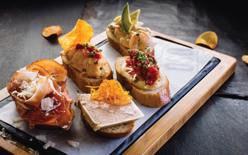Bar Oso — “oso” meaning “bear” in Spanish, in homage to Whistler’s wildlife — offers a profusion of Spanish-influenced small plates and a wide range of tapas crafted by Chef Jorge Muñoz Santos. The long, convivial bar has become a popular gathering place to sample an extensive lineup of regionally inspired craft cocktails.