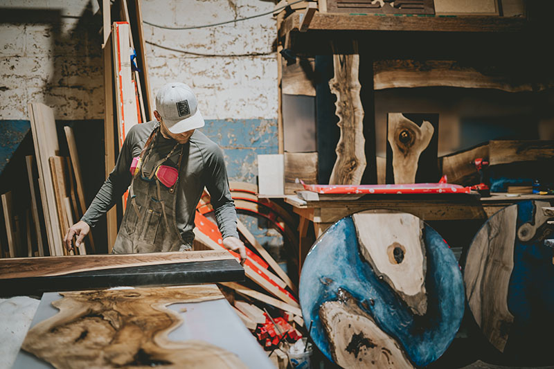 His Industrial Design degree supports his work as he considers the ergonomics and how the furniture will fit into a custom space — right down to the dimension and feel of the corners and edges of the artwork — before deciding which of the different mediums and technologies he will use to manufacture it.