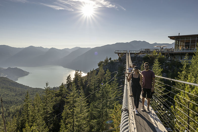 Since the 1980s, Squamish has been promoted as the “Outdoor Recreation Capital of Canada” because of its growing reputation as a place for outdoor pursuits. A defining moment in its emergence as a tourist destination was the opening, in 2014, of the Sea to Sky Gondola, which whisks guests 885 metres (2,903 feet) to the Summit Lodge, from which they can enjoy stunning views of Howe Sound and the surrounding mountains. During the ride up, visitors can see 335 m (1,099 ft.) Shannon Falls and the 702 m (2,303 ft.) Stawamus Chief, a popular hiking and climbing venue.